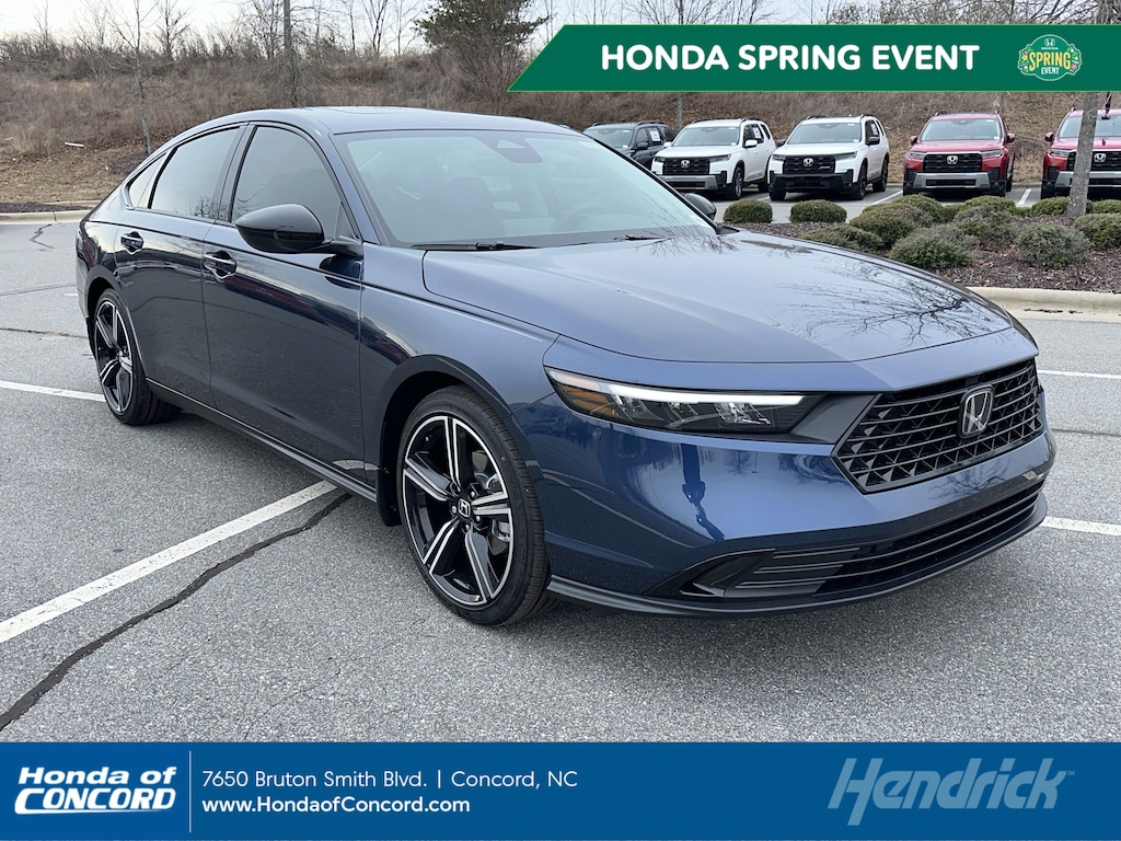 *Available on approved credit through Honda Financial Services in select states only. 2.99% APR available on select new and unregistered 2025 Honda Accord Hybrid models through 04/30/2026, for well-qualified buyers. Not all buyers will qualify. Higher financing rates apply for buyers with lower credit ratings. Actual down payment may vary. Dealer participation may affect actual payment. Dealer sets actual prices. See participating dealers for details. **$279 per month lease available on 2025 Accord Hybrid models with $3,999 due at signing, 36 months, and 10,000 miles per year. Must finance with Honda Financial Services. Tax, tag, title and other fees not included. Includes Captive Lease Cash. Please see dealer for details. For well qualified buyers. Cannot combine offer with any other discounts or incentives. Expires 04/30/26. ***Well-qualified customers who purchase a new, used, or certified pre-owned vehicle, 4 model years or newer with less than 60K miles between March 1 2026 and May 4, 2026, and finance through a participating dealer and lender have the option to defer monthly payments for 90 days from contract date. Excludes Hendrick Performance vehicles. Finance charges begin to accrue on the date you sign the Retail Installment Sale Contract at the Annual Percentage Rate (APR) disclosed in the contract. May not be combined with other preferred lender financing offers. 72 months maximum term limit. Equal monthly payments only. Not available to Pennsylvania residents; see your dealer for details. Must take retail delivery by May 4, 2026. See dealer for complete down payment and interest rate options and details.
