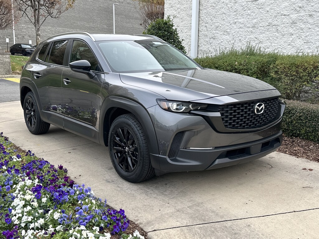 All Wheel Drive, Power Liftgate, Heated Driver Seat, Back-Up Camera, iPod/MP3 Input, Onboard Communications System, Aluminum Wheels, Keyless Start, Dual Zone A/C, Smart Device Integration, Cross-Traffic Alert, Lane Keeping Assist, WiFi Hotspot, Brake Actuated Limited Slip Differential, Blind Spot Monitor Rear Spoiler, MP3 Player, Keyless Entry, Privacy Glass, Remote Trunk Release. Mazda CX-50 2.5 S Preferred Package with Machine Gray Metallic exterior and Black w/Gray interior features a 4 Cylinder Engine with 187 HP at 6000 RPM*.